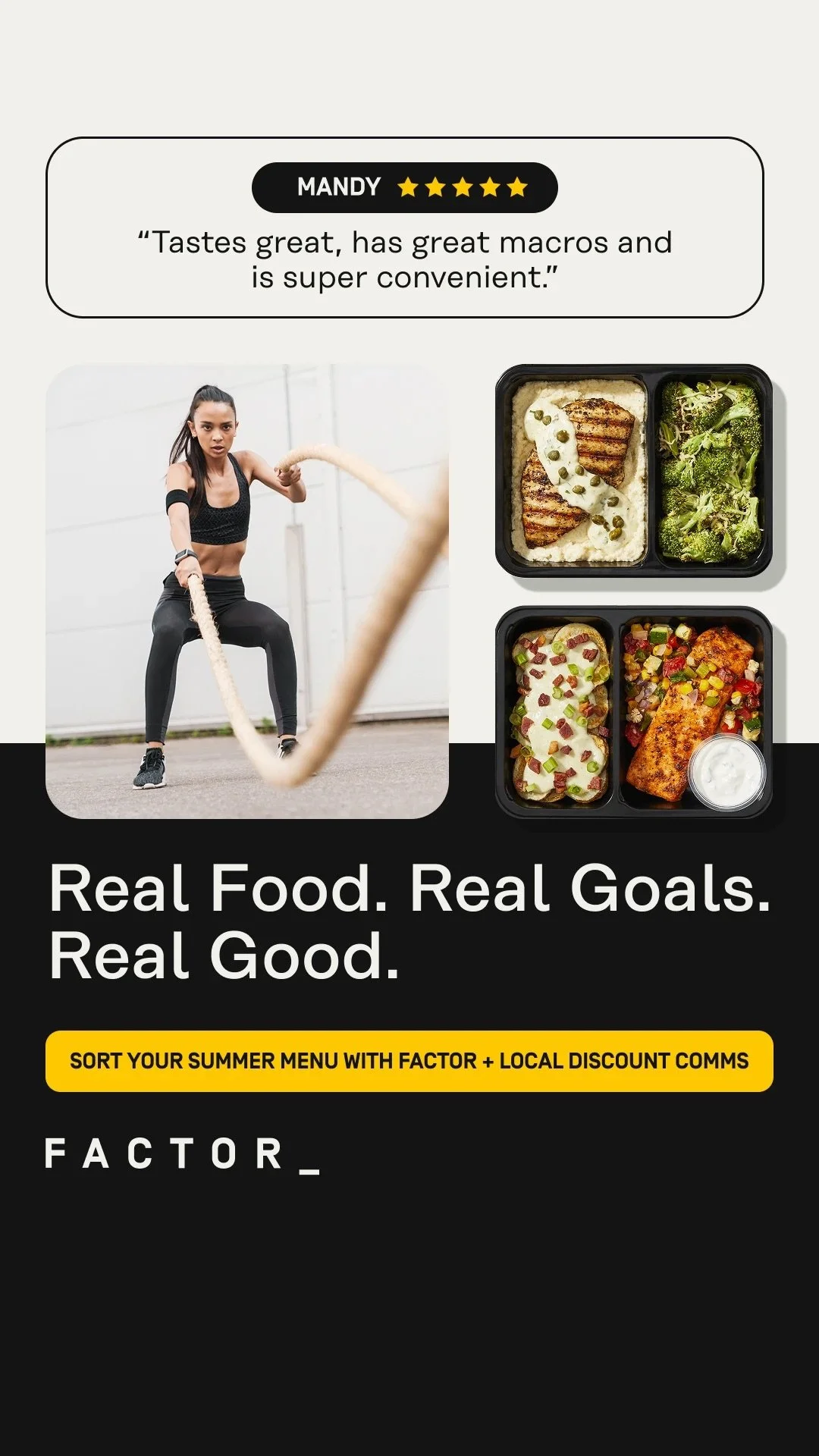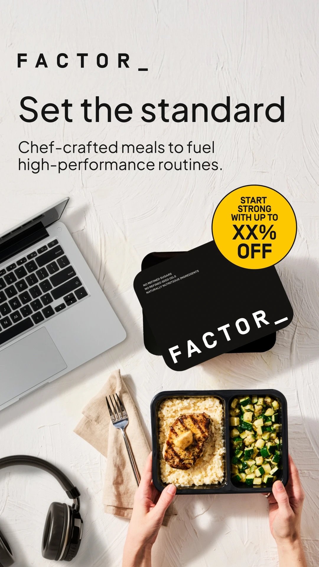 Beginning in 2025, Factor, a meal delivery brand focused on healthy, ready-to-eat meals, launched an ongoing Meta advertising series to boost awareness and drive subscriptions. I concept and design monthly creative assets for Instagram Stories and Facebook posts that highlight convenience, flavor, and balanced nutrition, helping the brand stay fresh, consistent, and engaging for a busy, health-minded audience.