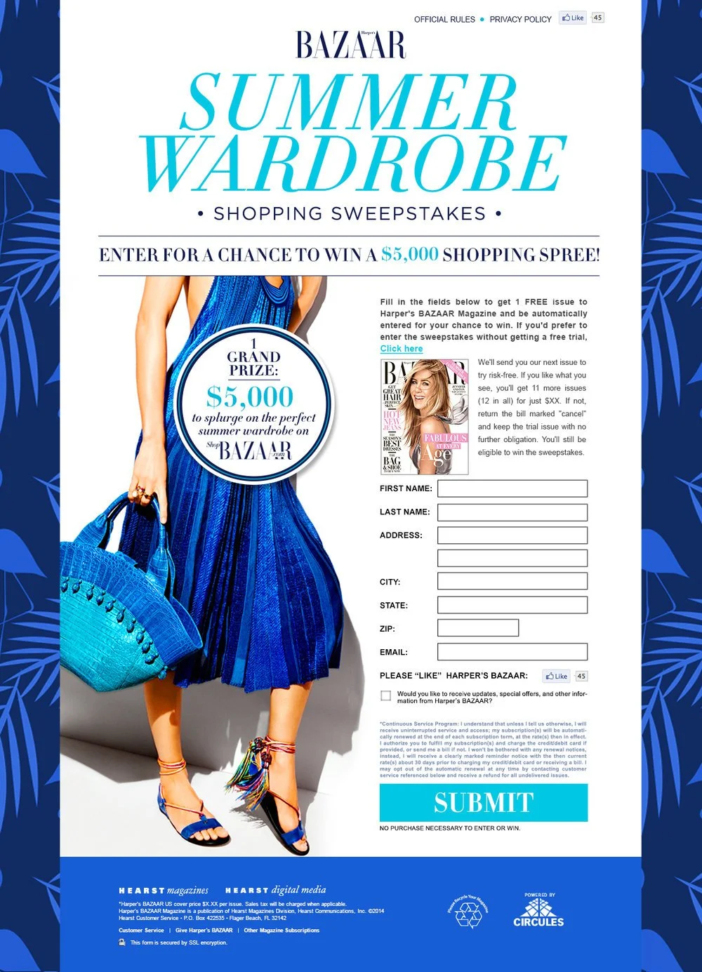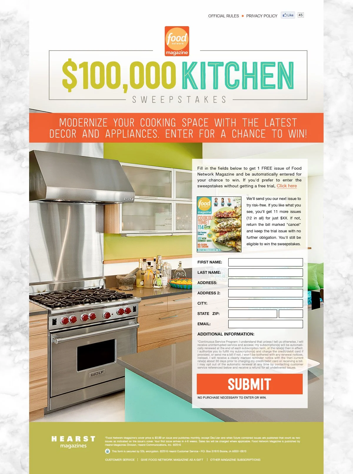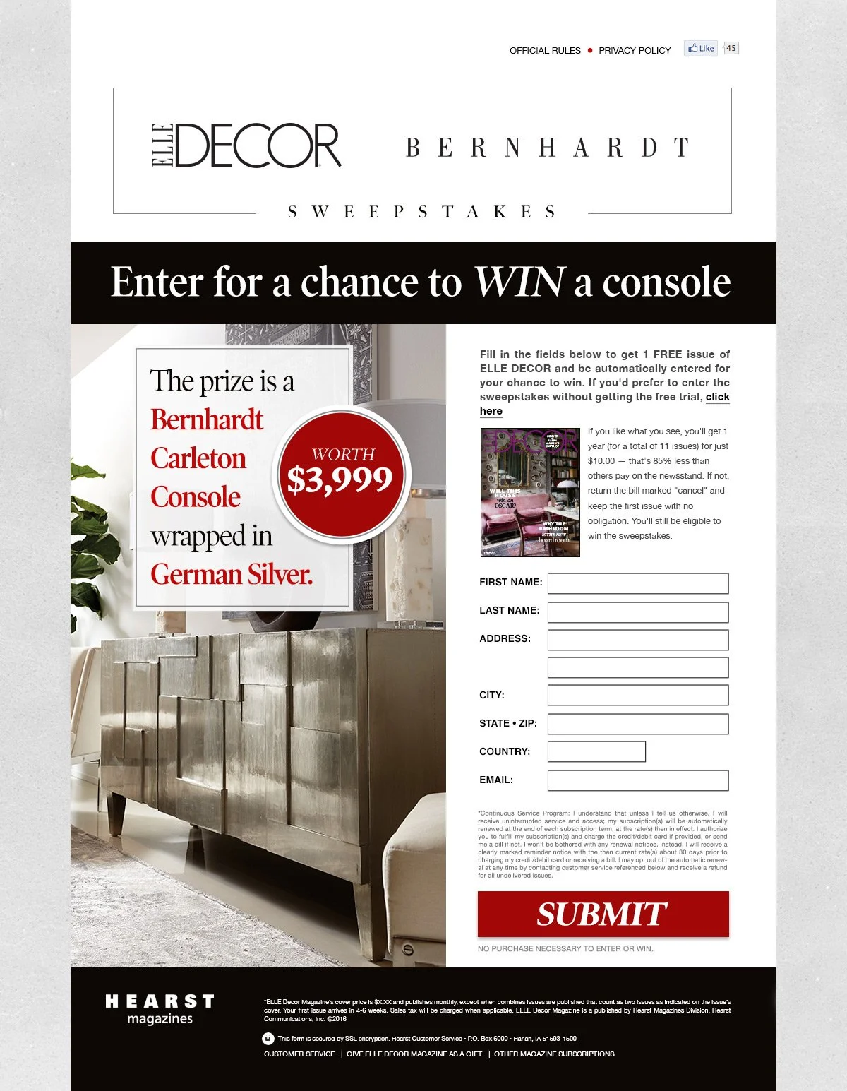 For Hearst Magazines, I designed a series of digital sweepstakes forms and accompanying emails to promote subscription-driven sweepstakes across a variety of titles. Each set features a sleek, user-friendly digital form paired with an engaging email, carefully crafted to capture the attention of potential subscribers and drive conversions. The campaigns were designed to seamlessly align with each magazineβs brand while making it easy for readers to enter, helping to boost subscriptions and grow their loyal audience.