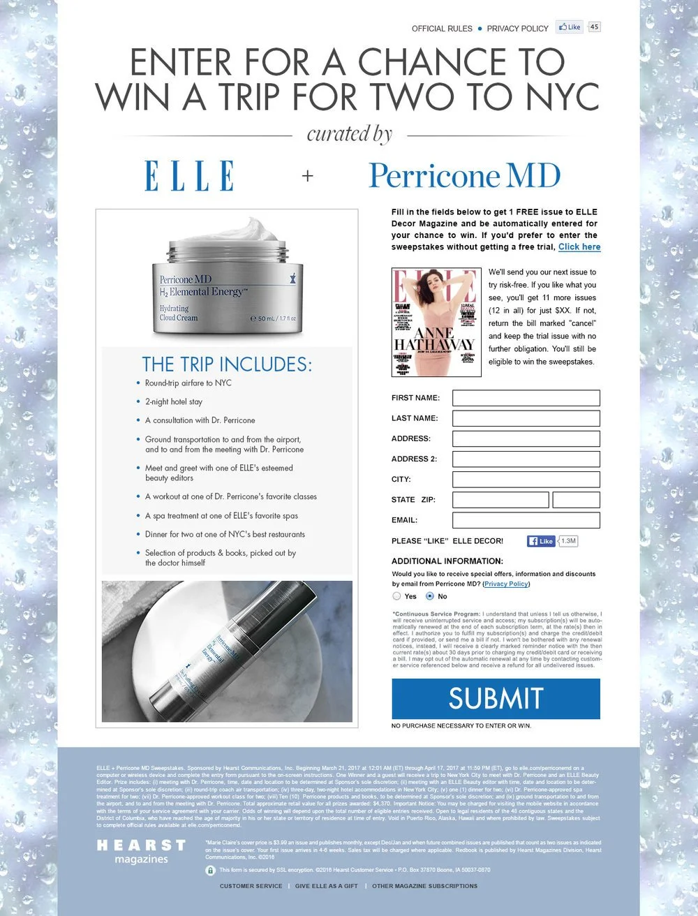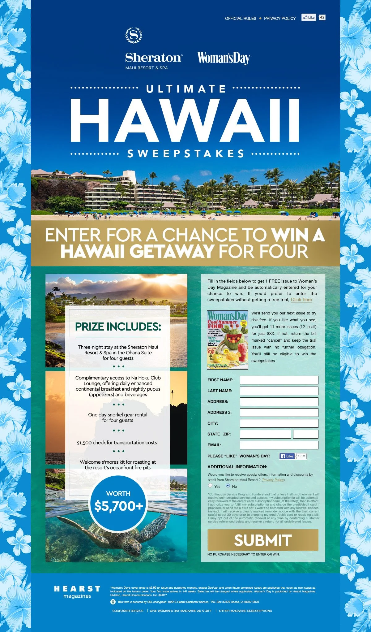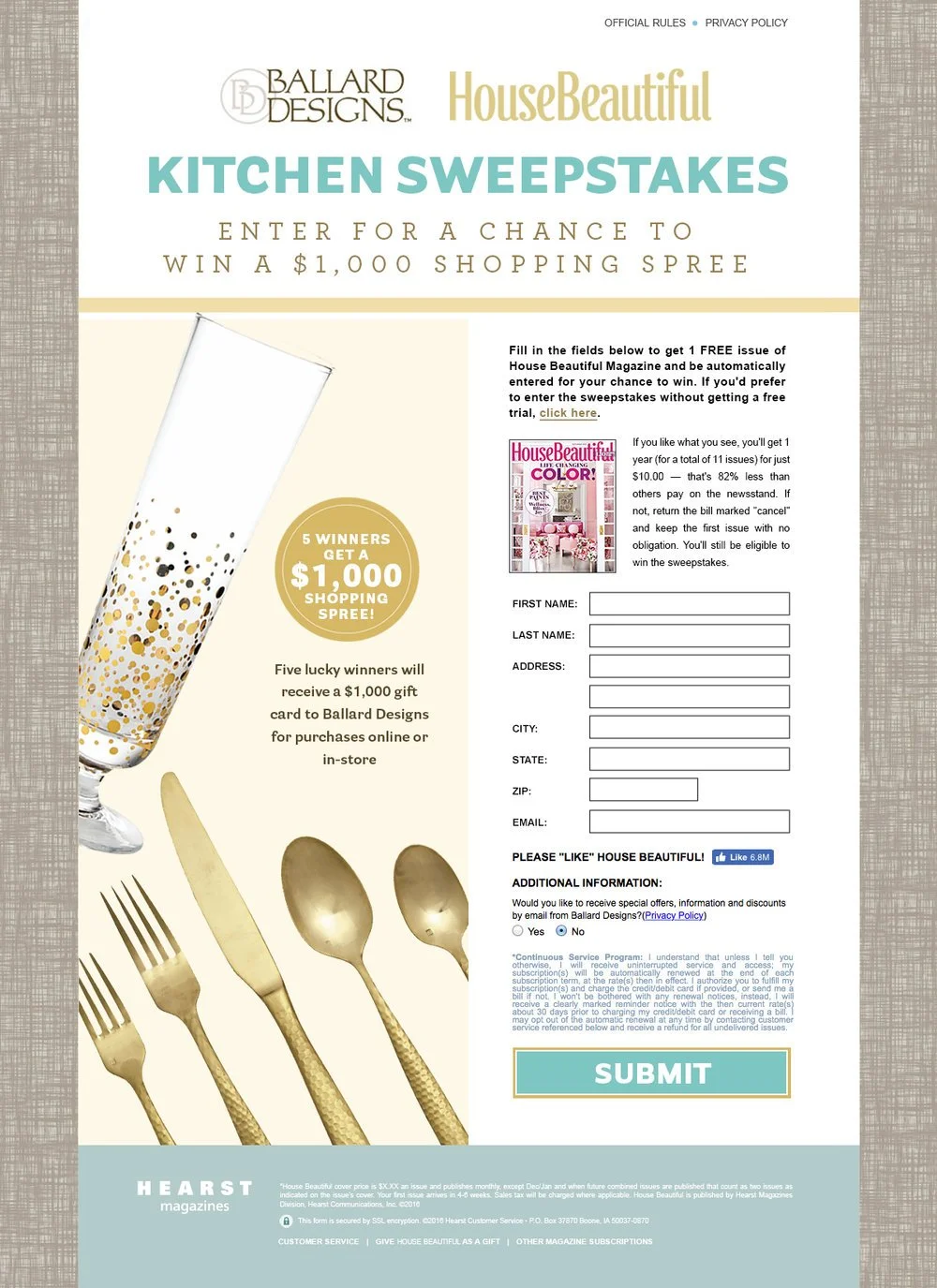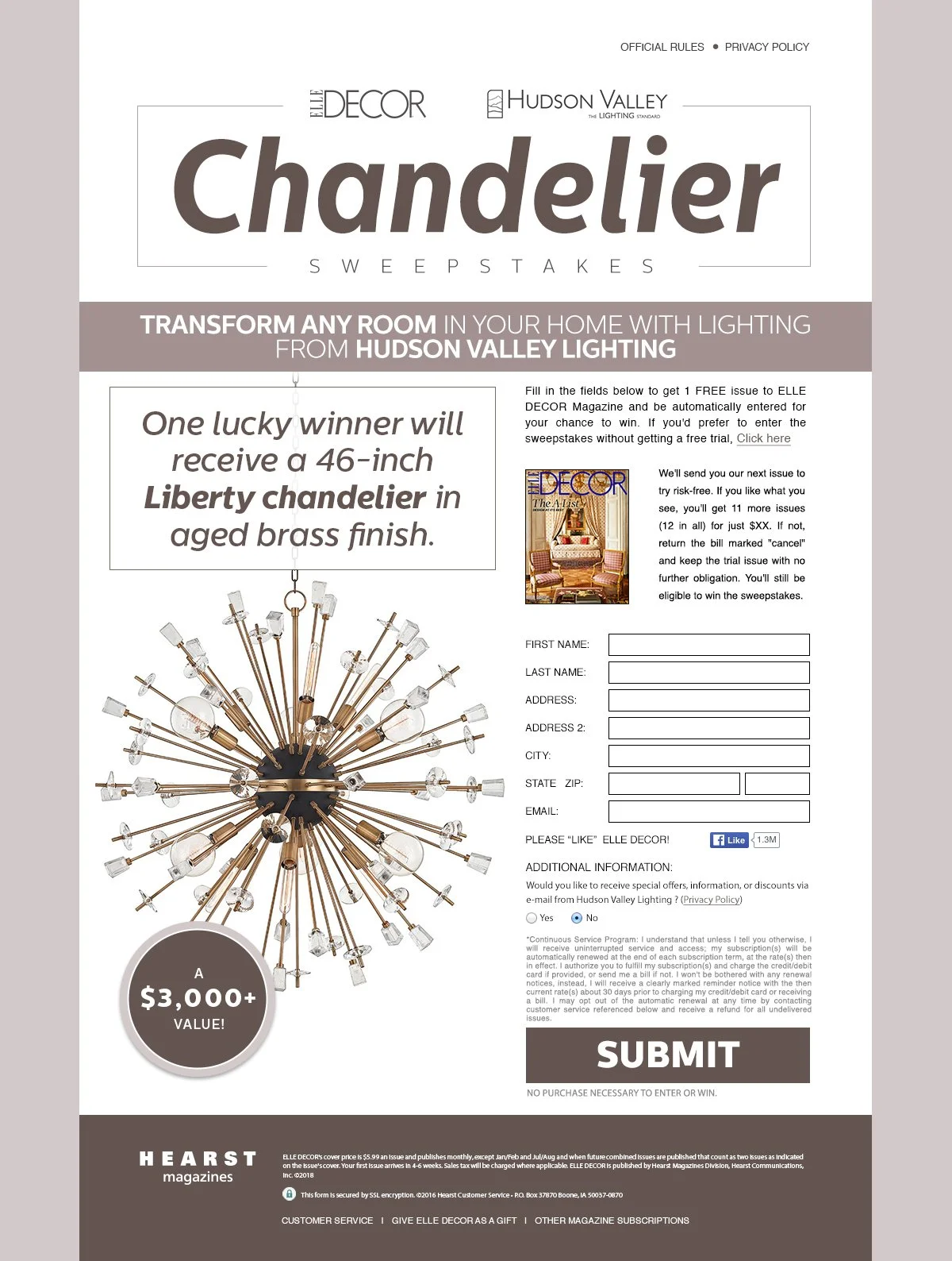 For Hearst Magazines, I designed a series of digital sweepstakes forms and accompanying emails to promote subscription-driven sweepstakes across a variety of titles. Each set features a sleek, user-friendly digital form paired with an engaging email, carefully crafted to capture the attention of potential subscribers and drive conversions. The campaigns were designed to seamlessly align with each magazineβs brand while making it easy for readers to enter, helping to boost subscriptions and grow their loyal audience.