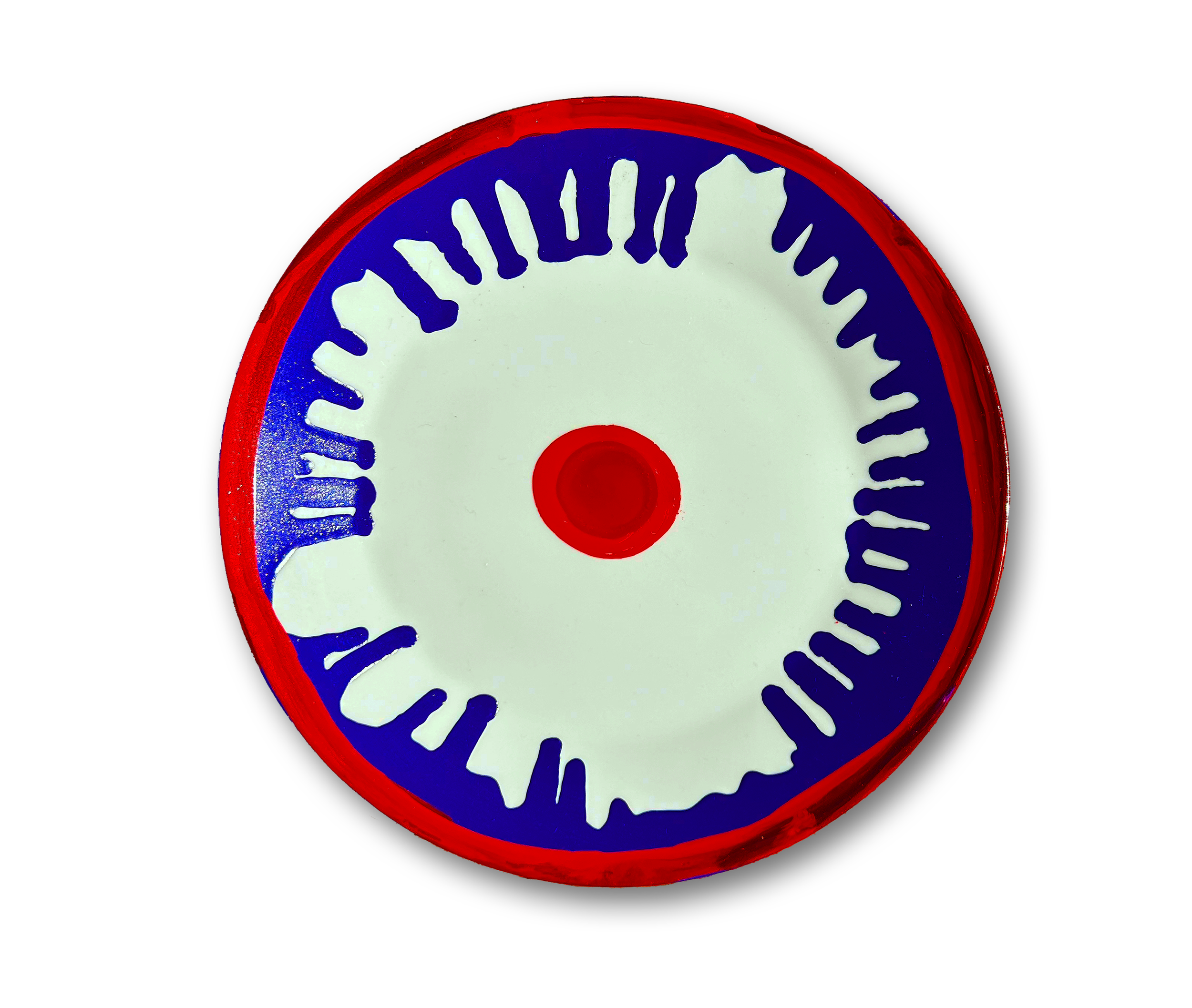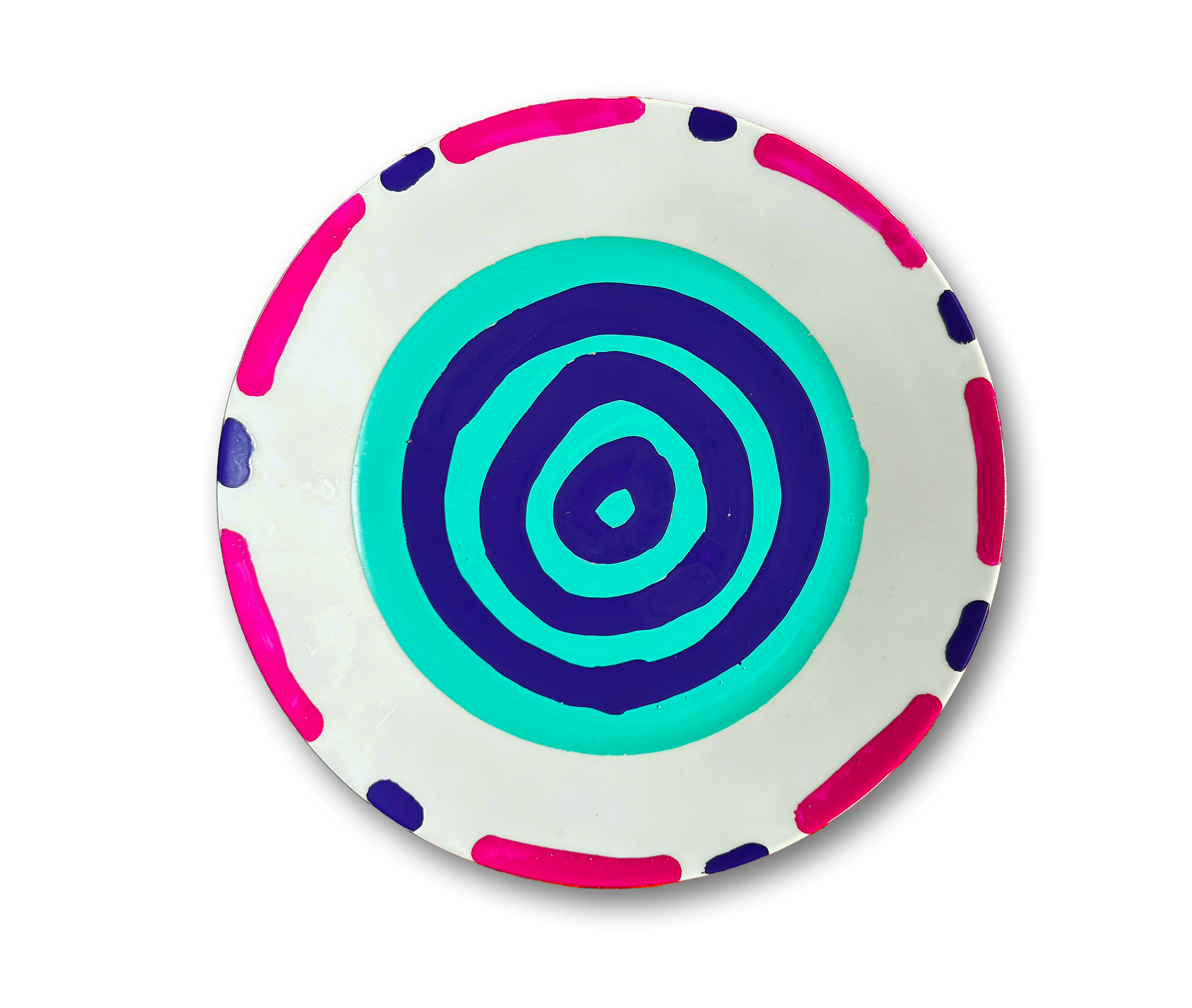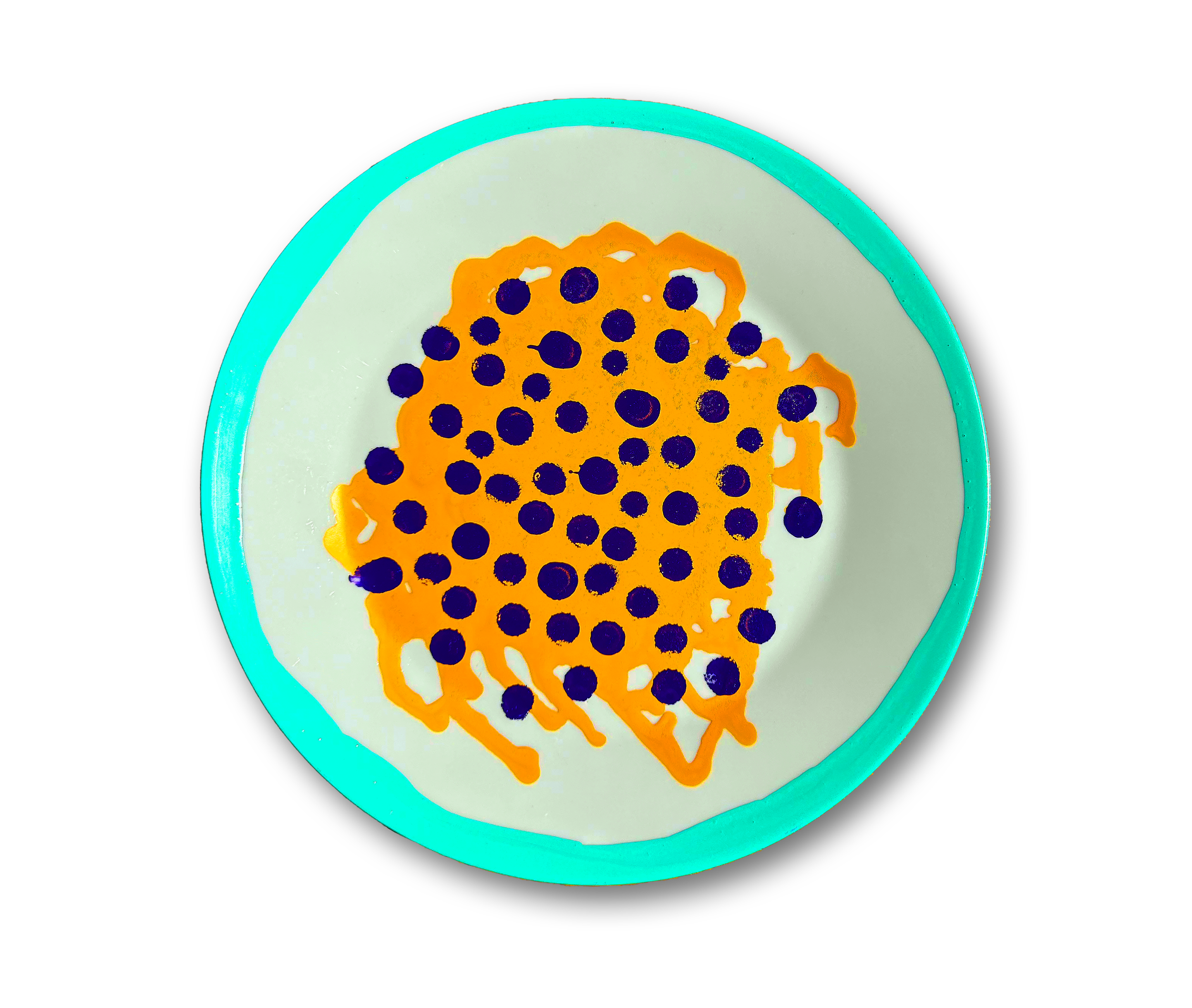 Mattallrik—Swedish for “food plate”—is a personal series where I gave new life to a set of old IKEA dinner plates I had lying around. What started as a simple way to use up some old paint turned into a fun exploration of shape, color, and texture—each plate becoming its own little canvas.