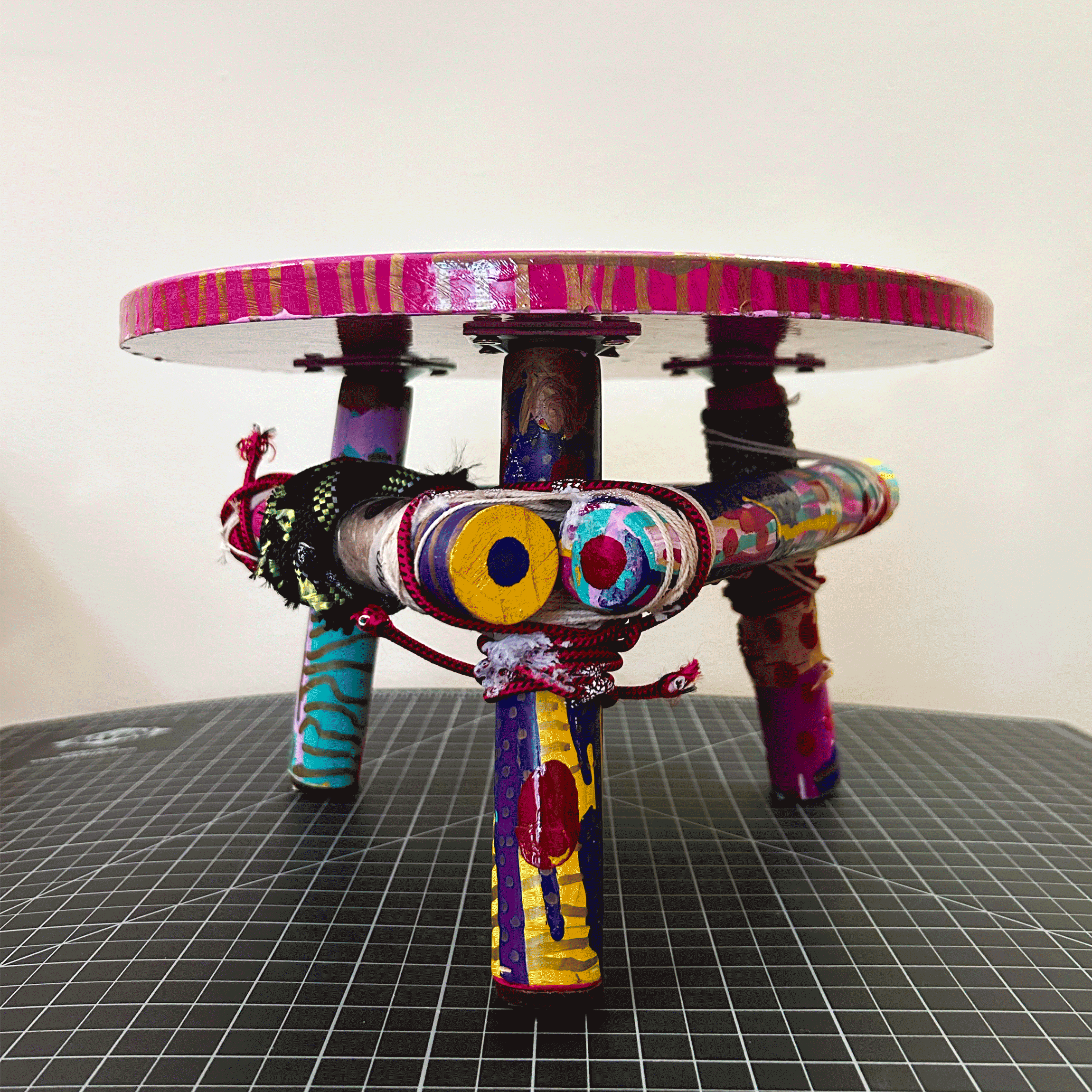 This old wooden stool was headed nowhere fast, so I took it apart, gave it some paint, added a few other details, and turned it into something a little more curious.