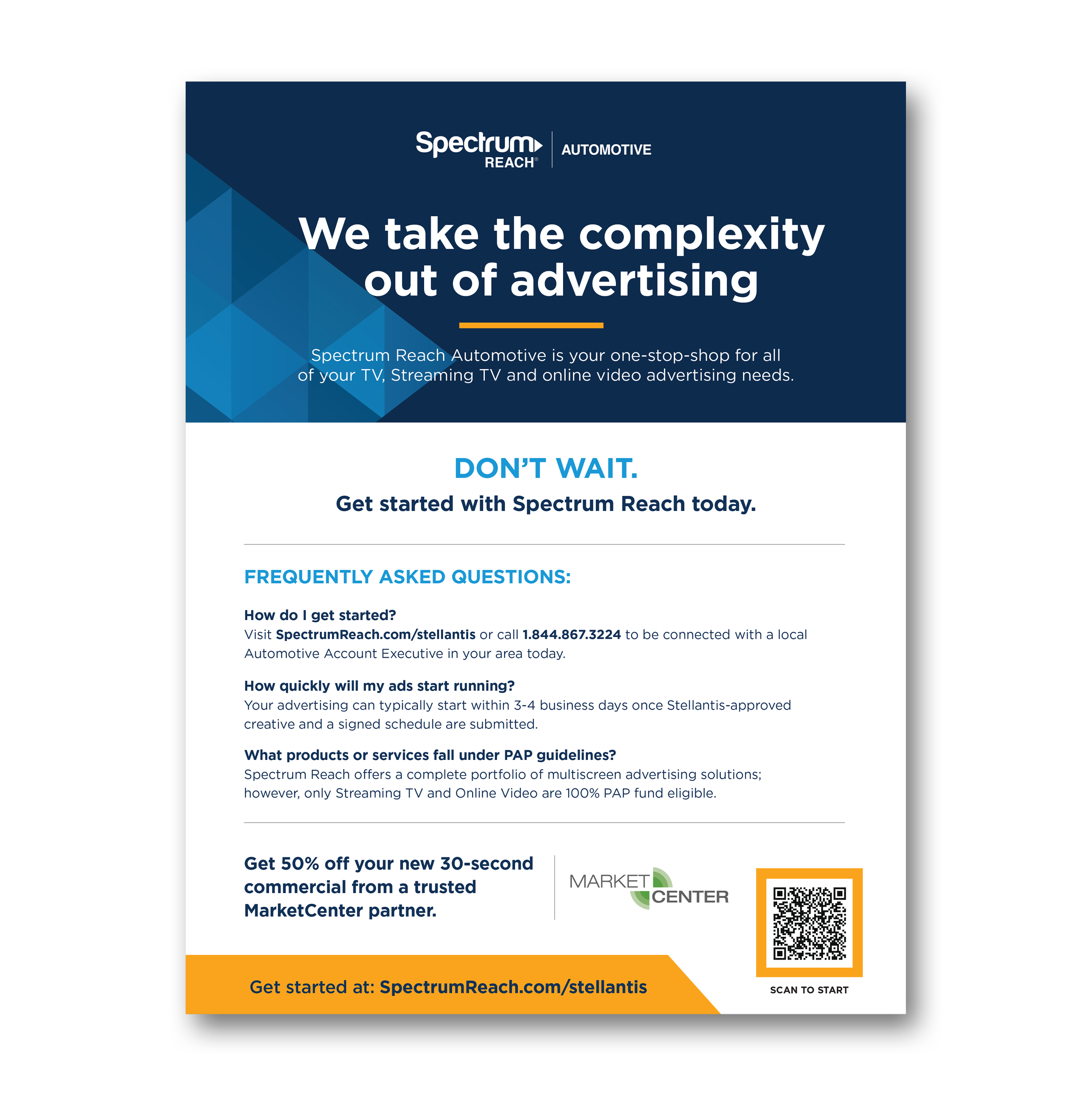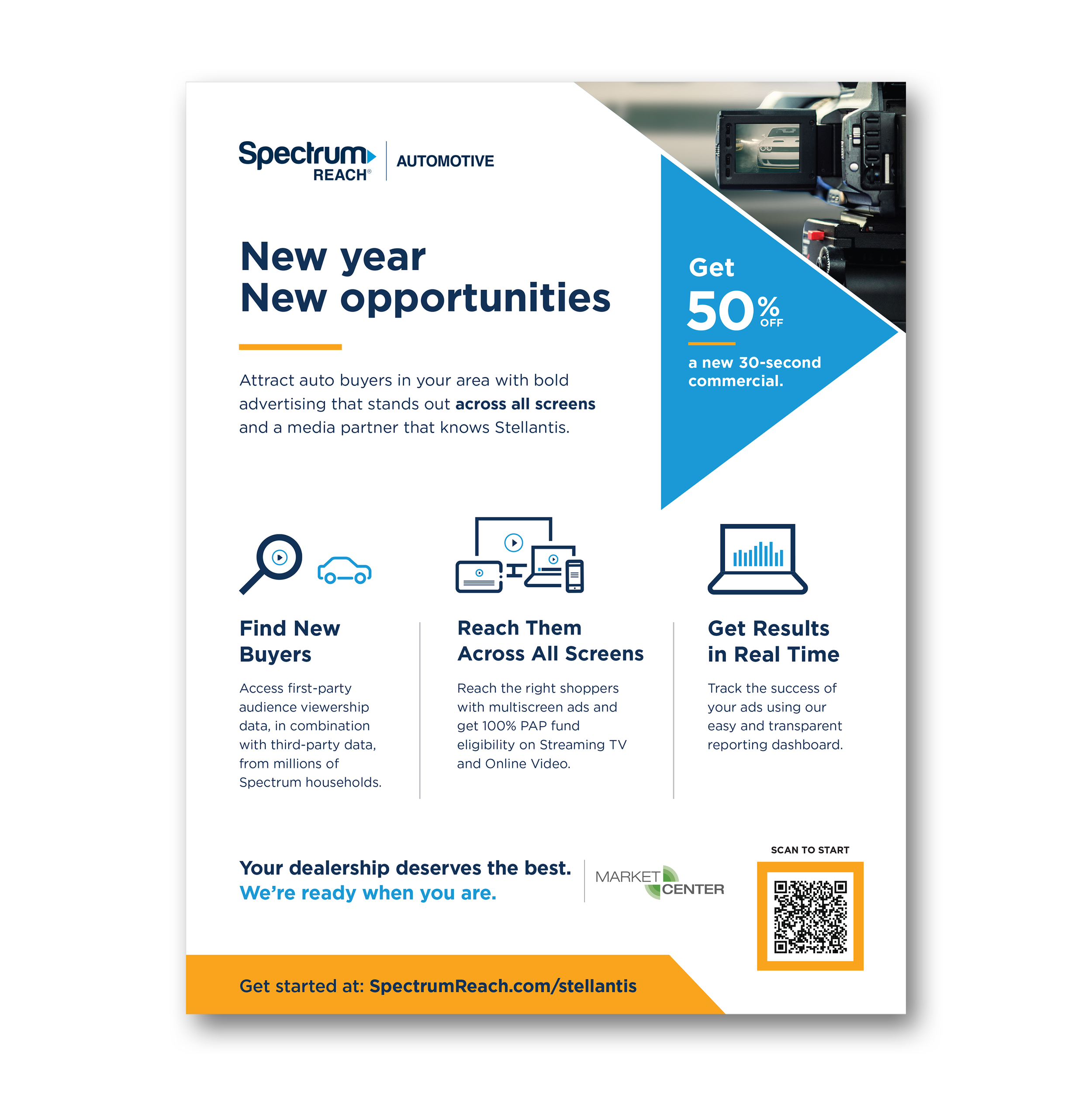 For Spectrum Reach Automotive, I designed a two-sided insert aimed at auto dealers in the Northeast. The piece was created to spotlight Spectrum Reach’s targeted advertising solutions—helping dealerships connect with car buyers across TV, streaming, and digital platforms. The design balances bold, eye-catching visuals with clear, benefit-driven messaging tailored to the needs of the automotive market.
