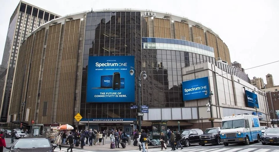 Digital out-of-home ads outside New York Cityβs Madison Square Garden.